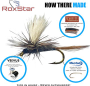 The RoxStar 60pc Dry Hatch Pack: 5 dozen premium dry flies, endless hatches matched, and a complete variety set for trout anglers.